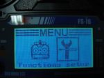 Wyświetlacz pokazuje numer wybranego modelu(możliwość zapisu 20 modeli), nazwę, typ, ustawienia trymerów, napięcie akumulatora nadajnika i odbiornika.