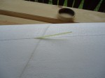 Po wsadzeniu płaskowników w styropian ( bez kleju) należy sprawdzić czy skrzydło nie uległo wygięciu. Jeśli tak się stało , to trzeba je wyprostować.