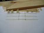 Można sobie pracę ułatwić przyklejając taśmę malarską papierową na skrzydło. Następnie narysować linię w miejscu w którym będą umieszczone płaskowniki. Teraz można wykonać nacięcie i wcisnąć płaskowniki w skrzydło łącząc je za sobą na zakładkę. Taśma papierowa dodatkowo osłoni nacięte krawędzie przed uszkodzeniem podczas wciskanie płaskowników. Taśmę można odkleić po upewnieniu się że płaskownik umieszczony jest na odpowiedniej głębokości.