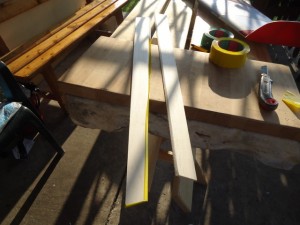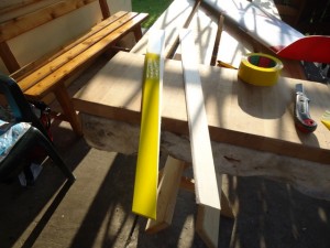 Dźwigary są z płaskowników laminatowych o wymiarach 1200mm x 4mm x 1mm i łączone są ze sobą na środku skrzydła na zakładkę.