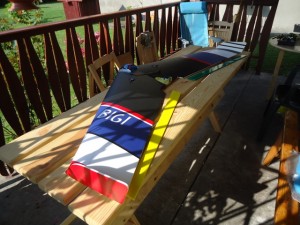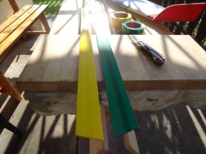 Do oklejenia lotek została użyta kolorowa taśma pakowa.