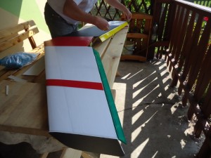 Skrzydło gotowe jest do oklejenia. Można je jeszcze raz przeszlifować papierem ściernym i koniecznie przetrzeć wilgotna szmatką, pozbywając się pyłu.