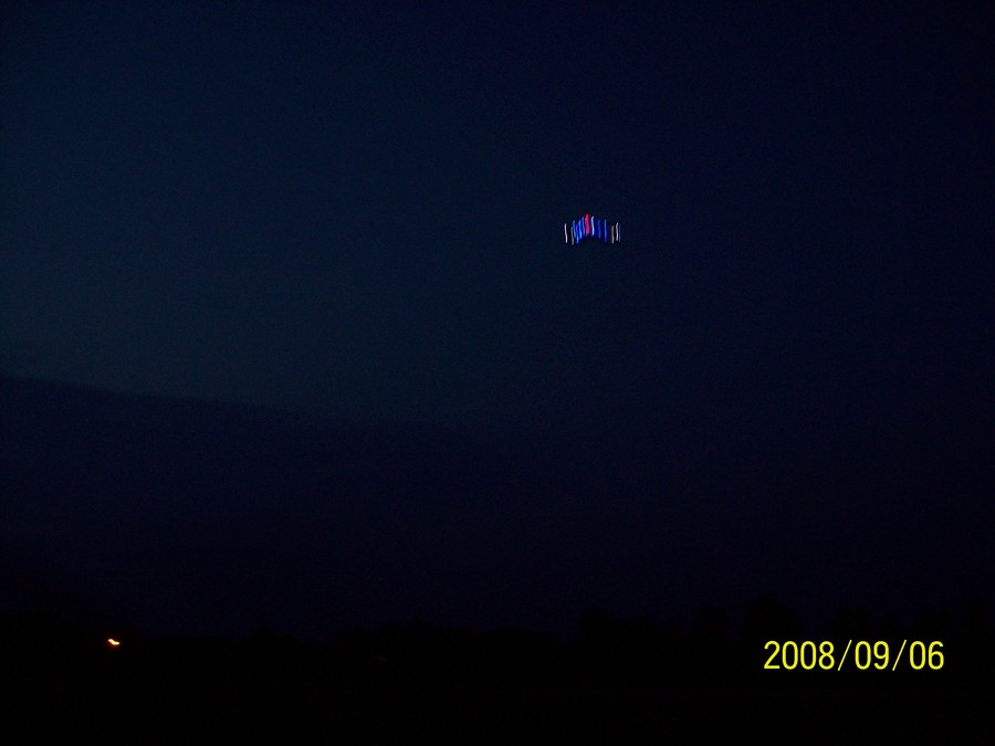Witam wszystkich zainteresowanych nocnym lataniem. Koledzy, jeżeli już zdecydujecie się na zrobienie czegokolwiek co lata z oświetleniem LED musicie się liczyć z tym, że „UFO” przyciąga uwagę przedewszystkim kierowców. I tutaj mała przestroga!!! W dniu dzisiejszym w Lubięcinie mało nie doszło do stłuczki z udziałem trzech samochodów osobowych i tira:/ Lataliśmy z Tomkiem naszymi skrzydełkami po ciemku i wszystko było ok, ale gdy podchodziłem do lądowania od strony ulicy zrobiło się małe zamieszanie na drodze. Nie będę się rozpisywał, ale UWAGA!!! NIE LATAMY NAD ULICAMI i nad przejeżdzającymi samochodami!!! Przeciętni ludzie, którzy nie mieli kontaktu z czymś takim w momencie gdy zobaczą coś co nisko leci, świeci i mruga wszystkimi kolarami są w konsternacji. Zabawa jest naprawde świetna, ale z perspektywy czasu okazała sie niebezpieczna.