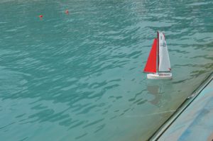 Po zakończeniu rozgrywek modeli elektrycznych na wodę zeszły modele żaglowe klasy FOOTY, ale już poza konkursem…