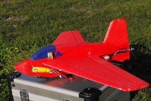 Pierwszy start modelu wyposażonego w żyroskop przebiegł bez najmniejszych zakłóceń. Poleciał prosto, rozpędził się i mogłem przejść do prawie pionowego wznoszenia. Tylko smugi dymu od silnika rakietowego brakowało. Wstępne ustawienie czułości żyroskopu okazało się za duże. Model kiwał się w locie wzdłuż osi podłużnej. Zmniejszyłem nieco czułość i następny lot był prawidłowy. Model fajnie lata i rozwija dość dużą prędkość. Nadal jednak trzeba było uważać w zakrętach. Tutaj żyroskop nie pomaga. Jeżeli prędkość jest nieco za mała (połowa gazu lub mniej) to zwalenie się modelu na skrzydło jest pewne.