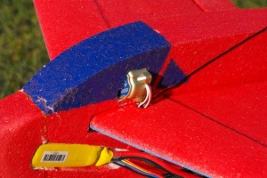 Małe modele o wąskich zakończeniach skrzydeł mają taką charakterystykę i latanie nimi przysparza emocji. Aby ułatwić start, gdzie pojawiają się dość gwałtowne reakcje modelu zamontowałem żyroskop na lotkach. Musiałem zrezygnować z miksera wysokości i lotek w nadajniku i wykorzystać mikser za odbiornikiem. Czułość żyroskopu ustawiłem na około 30% – tak by stery wyraźnie, ale nie za dużo, reagowały na ruchy modelu w osi podłużnej. Nie miałem doświadczeń z żyroskopami i takie ustawienie wydawało mi się bezpieczne.
