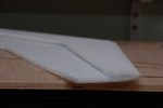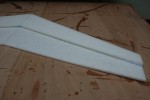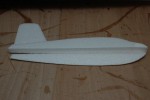 Zdecydowałem się na KFm2 ze stopniem na górnej powierzchni profilu. Łatwy w wykonaniu i wygląda „normalniej” niż KFm1 ze stopniem na dolnej powierzchni. Wykonałem je z płyty EPP o grubości 6mm. Jako dźwigarów użyłem prętów szklano-epoksydowych (może poliestrowych). Do klejenia użyłem CA i Uchu Power (podobny do Uchu Porr ale dostępny w wielu sklepach). Kadłub wyciąłem i oszlifowałem z kawałka EPP jaki pozostał mi po skrzydłach od Koszałka. Ważniejsze detale widać na zdjęciach. Do napędu użyłem małego silnika C20 i tego samego śmigła co w przypadku pierwszego modelu – 4,75×4,75.