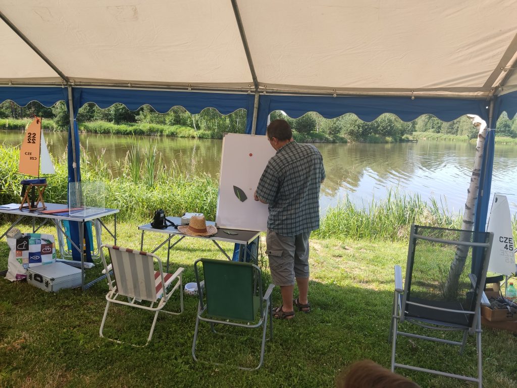 Mistrzostwa Czeskiej Republiki radiomodeli żaglowych klasy FOOTY odbyły się w dniach 18-19 czerwca w Drachov, gdzie przyjechało kilkunastu zawodników i zawodniczek z Czech i Polski. 🇵🇱Polskę reprezentowaliśmy jako skipperzy z Klubu Modelarskiego Bytom Odrzański. W piątkowe przedpołudnie wyruszyliśmy w drogę, którą pokonaliśmy po blisko 8-godzinnej jeździe ze względu na uciążliwe korki przed, w i za Pragą😤 Najważniejsze jednak, że dojechaliśmy cali na miejsce, gdzie po zakwaterowaniu się zjedliśmy zaległy posiłek i wzięliśmy się za przygotowania naszych modeli do startów. Wieczór upłynął w przyjacielskiej atmosferze, gdzie po trudach podróży można było schłodzić się napojami i uraczyć się grillowanymi potrawami konsultując z pozostałymi zawodnikami taktykę regatową i nie tylko… W sobotni poranek od godz. 9 rozpoczęła się rejestracja zawodników i pomiary klasowe modeli. W pełnym słońcu i przy bardzo zmiennym wietrze, którego chwilami brakowało rozegrano pierwsze biegi… Potem była przerwa obiadowa i kolejne starty. Po zakończeniu sobotnich startów przyszedł czas na wieczorny relaks w doborowym towarzystwie polskich i czeskich skipperów🍹🤝 Niedziela była jeszcze bardziej upalna i pełna niespodziewanych szkwałów, ale udało się zrobić kolejne biegi, po których nastąpiło podsumowanie wyników.