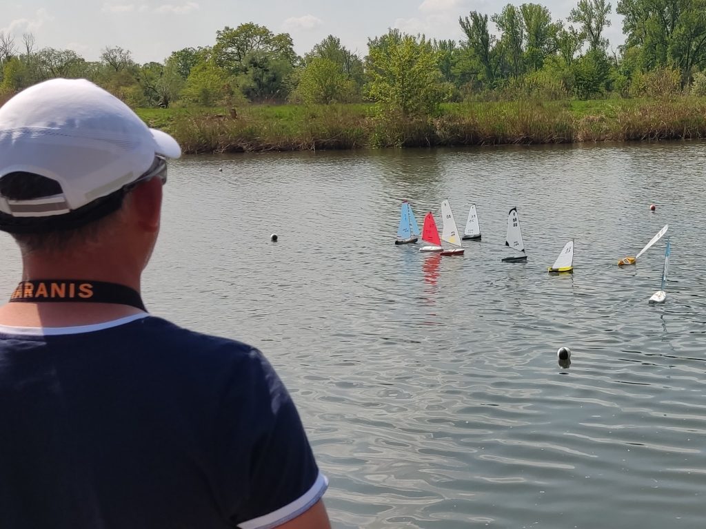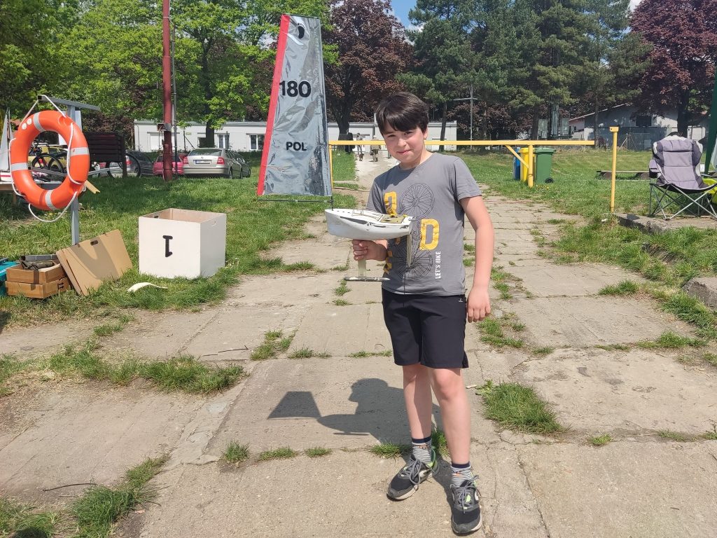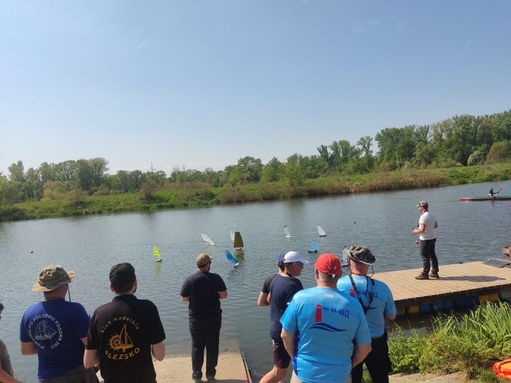 W niedzielę 8 maja organizatorzy bardzo punktualnie rozpoczęli regaty radiomodeli, gdzie skipperzy z Polski , Czech i Ukrainy startowali na przemian. Seniorzy wypływali 12 biegów, a juniorzy 6. Pogoda była nad wyraz słoneczna, a wiatr choć dopisywał to zaskakiwał swoją zmiennością 😉