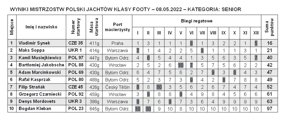 W kategorii seniorów tytuł Mistrza Polski 2022 zdobył Vladimir Synek CZE-35! Drugie miejsce zajął Maksym Soppa UKR-1,trzeci był Kamil Musiejkiewicz POL-97 reprezentujący Klub Modelarski Bytom Odrzański.