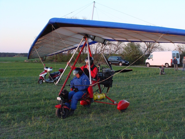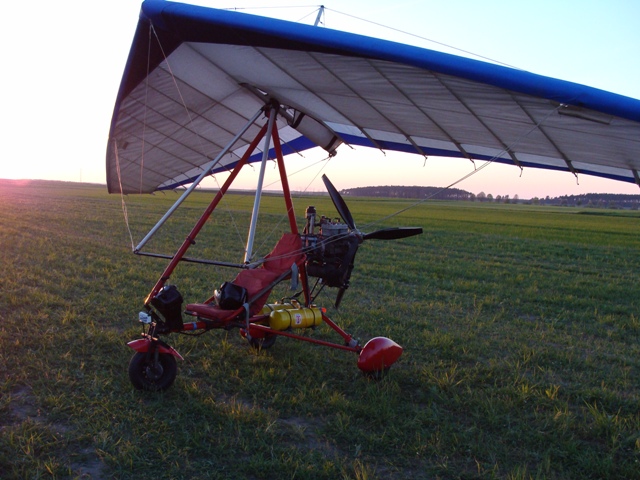 Wózek dwuosobowy produkcji rosyjskiej MD-20 wykonany z rur duralowych Pa7, silnik Rotax 532 wersja z jednym gaźnikiem (około 60KM), skrzydło Stranger produkcji Ukraińskiej.