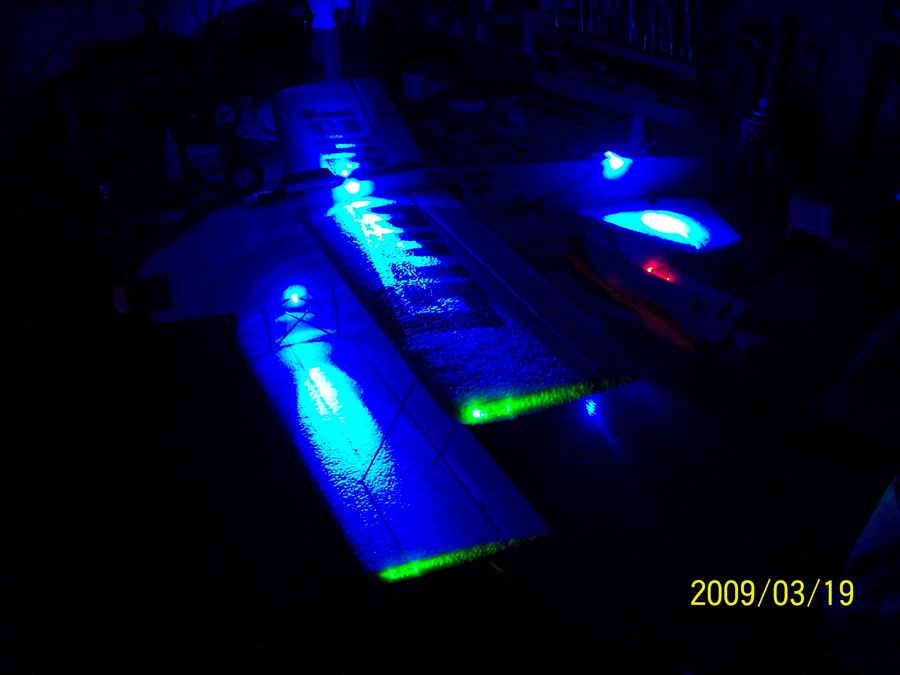 Zamieszczam filmiki i poglądowe zdjęcia przedstawiające oświetlenie zainstalowane ostatnio w moim modelu. Świetna rzecz do lotów wieczorami i w nocy !!! Poniżej znajdziecie się trochę informacji dot. budowy takiego gadgetu.