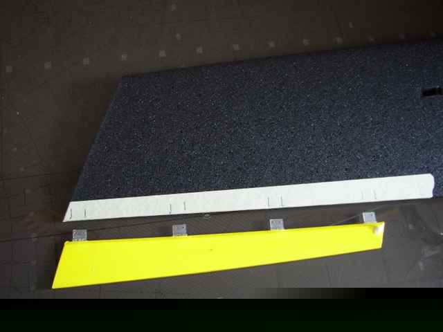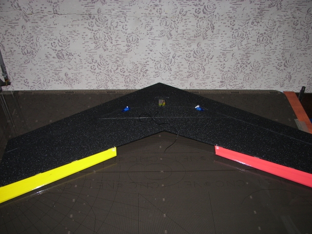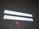 Po sklejeniu ze sobą dwóch polówek , wkleiłem od dołu płata dodatkowe dwa dźwigary z płaskownika 1.5mm*2.5mm. W płatach są wyfrezowane otwory pasujące pod serwa typu Hitec HS-55 lub Hxt 900 oraz pod odbiornik Jeti Rex 5 plus.