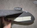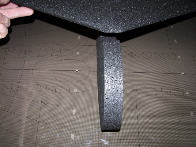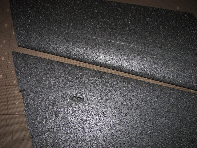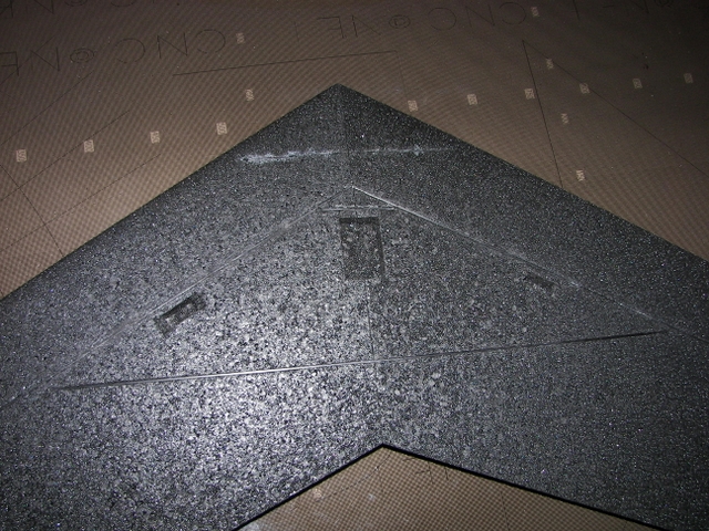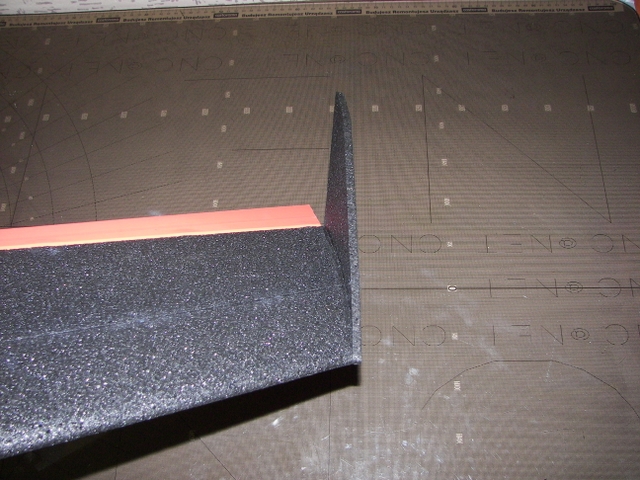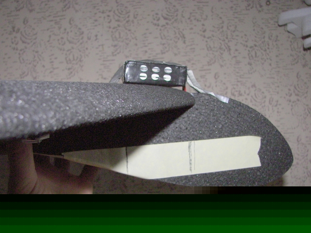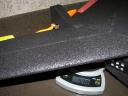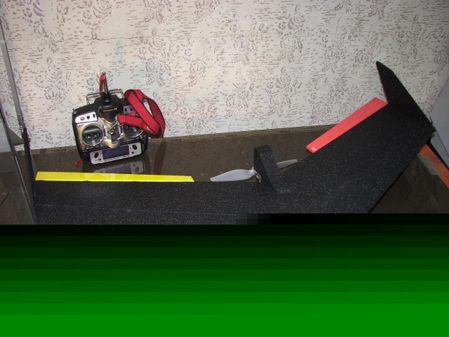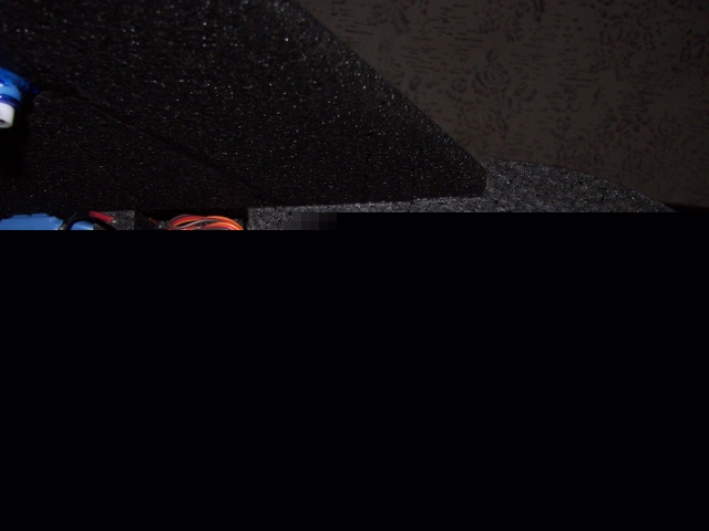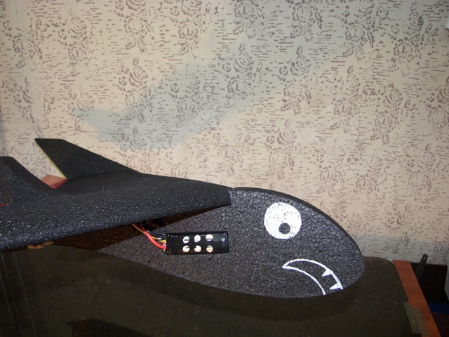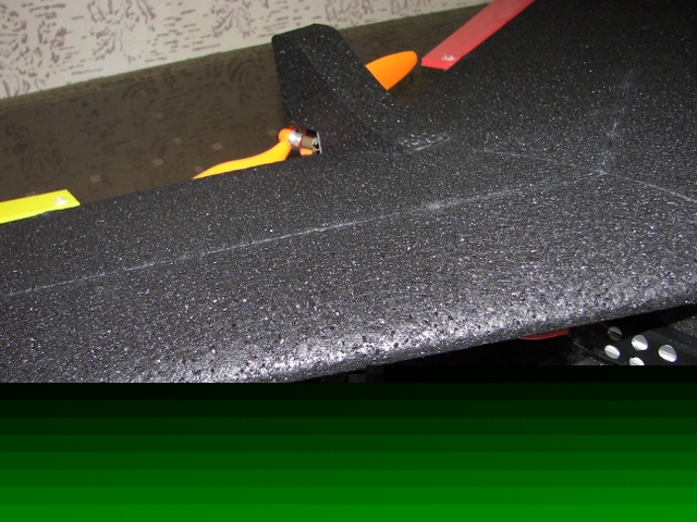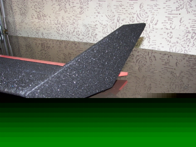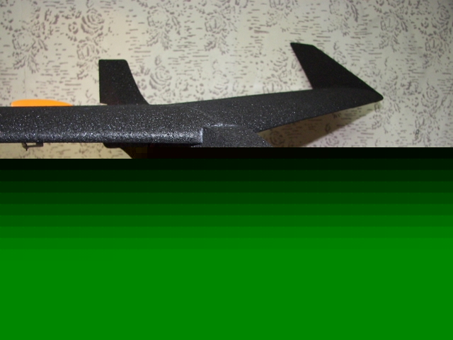 Kadłub -ma grubość 30mm. na całej długości i nie może być inny, ponieważ z tyłu musi pomieścić silnik, a z przodu akumulator. Powinienem go wzmocnić prętami z węgla w okolicach wyciętego miejsca na akumulator, ale brakło mi kleju. Zrobię to na pewno, bo kadłub jest najbardziej narażony na uszkodzenia podczas twardego lądowania.