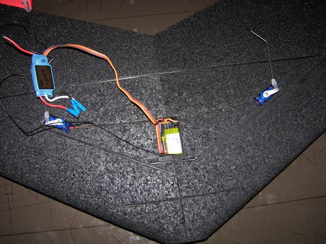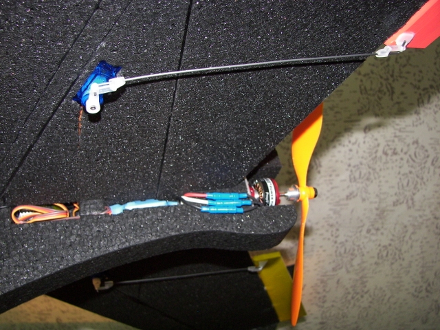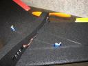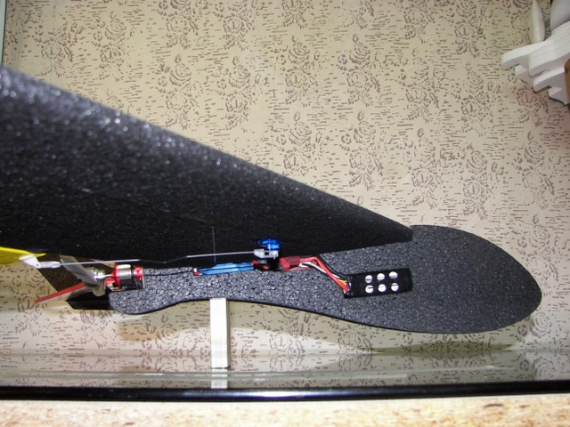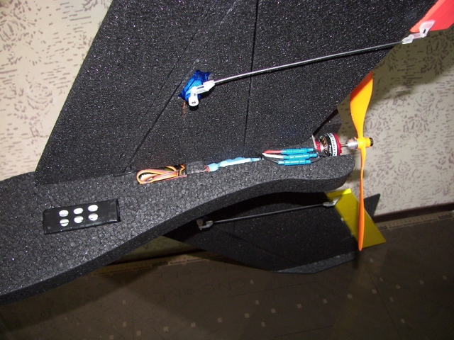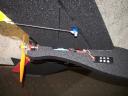 Cała elektronika została zamocowana w modelu na wcisk w pasujące otwory bez ingerencji kleju. Tylko silnik jest przykręcony śrubkami do przyklejonej płytki z laminatu. Dzięki temu można w kilka minut bez kłopotu wyjąć i wymienić uszkodzone serwo, odbiornik lub regulator nie niszcząc konstrukcji.