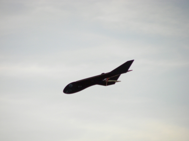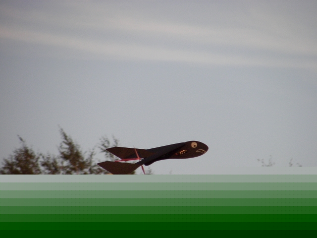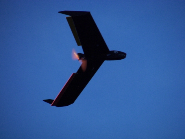 Następne latanie było czystą przyjemnością. Model lata bardzo przewidywalnie. Dobrze szybuje, potrafi latać na małych prędkościach, by potem błyskawicznie przyspieszyć. Po przeprowadzonych testach ze śmigłami stwierdzam, że do napędu najlepsze są śmigła nie mniejsze niż 10 cali. Przy takich śmigłach Pirania nie rozpędza się przy dodaniu więcej gazu, tylko strzela przed siebie jak pocisk. Na początku robi to wrażenie, potem można się do tego przyzwyczaić. Zdjęcia były zrobione wieczorem, więc nie są rewelacyjne.