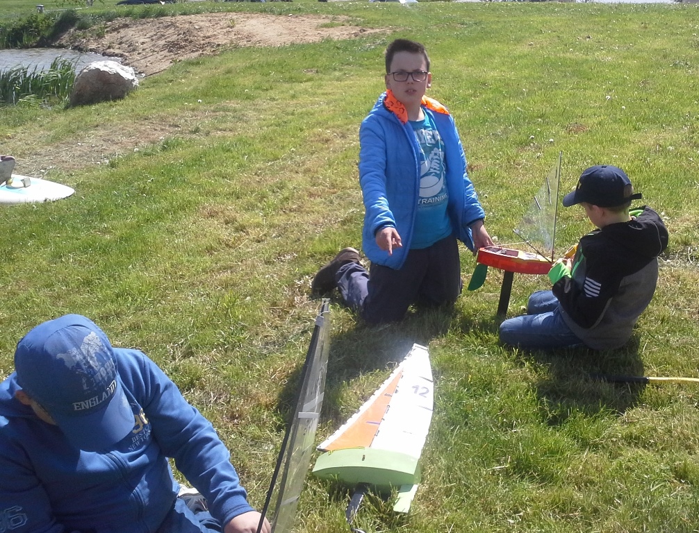 Pogoda sprzyjała pływaniu, gdyż słoneczko dopisało, a wiatr był nad wyraz silny jak na tę klasę najmniejszych żaglóweczek zdalnie sterowanych. Najpierw przyszedł czas przygotowań do startów, w których pomocni byli także rodzice…