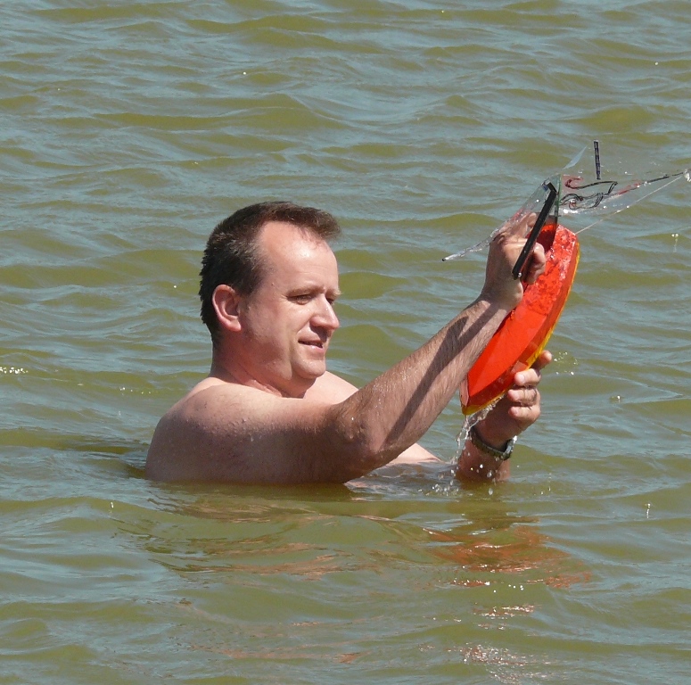 Podczas treningu przedstartowego najmłodszym zawodnikom dwa modele poszły pod wodę, ale dzięki poświęceniu instruktora sprawnie wydobyto je z wody 😉