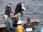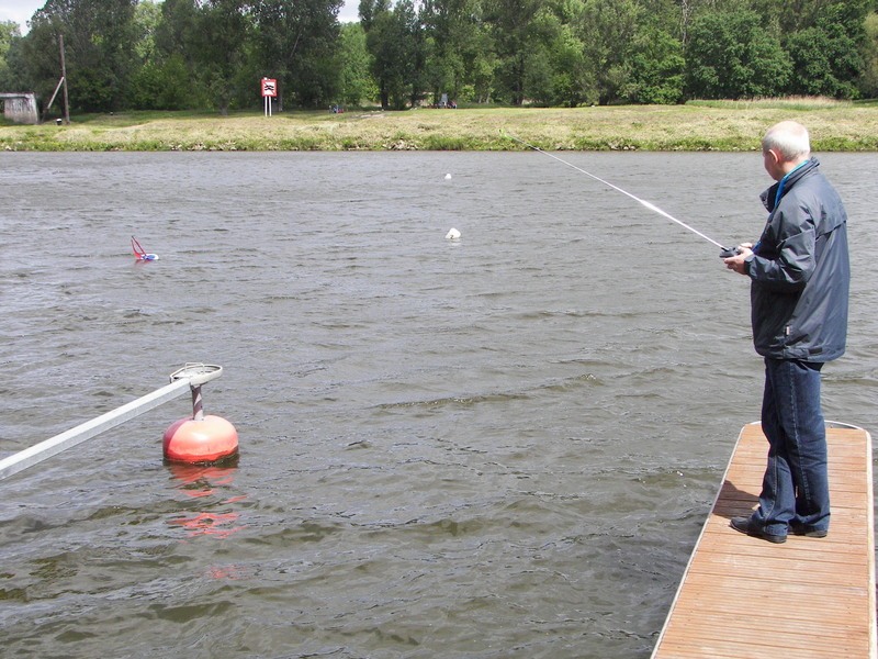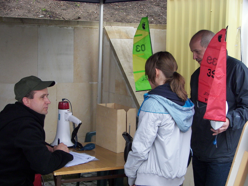 Obsługę techniczną zawodów zapewnili miejscowi harcerze-wodniacy, którzy dzielnie wyławiali modele z wody, którym była potrzebna pomoc. Z uwagi na dużą liczbę zawodników zdecydowano, że osobno i na przemian będą startowali juniorzy i seniorzy. Jako pierwsi z silnym wiatrem zmagali się juniorzy, którzy dzielnie próbowali pokonać wyznaczoną trasę. Nie obyło się bez kolizji, awarii a ponadto jedna żaglówka utonęła. Cóż… była to przestroga dla innych, że z żywiołem nie ma żartów 😉