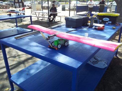 Kolejnego dnia jesteśmy już na lotnisku. Sprawdzamy teren. Postanawiamy zmodyfikować trochę nasze micro na ten dzień. Wyposażamy go w podwozie, chociaż regulamin tego zabrania, w tym roku start mikrasem musi odbyć się z ręki lub wyrzutni. Naszym celem jest obserwacja zachowania samolotu w momencie startu, chcemy oszacować ile damy radę podnieść i nie roztrzaskać przy tym modelu.