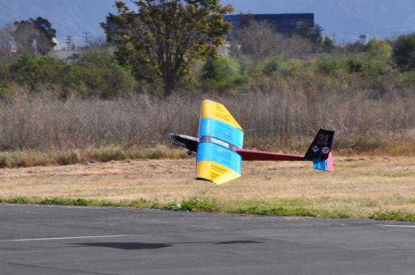 Ogromny pęd sprawia, że Biceps szybko toczy się po pasie i nie chce się zatrzymać. Uderza w trawę na końcu pasa i jeszcze chwilę jedzie dalej. Opuszczenie pasa w taki sposób jest dozwolone. Zderzenie z trawą powoduje wygięcie potężnego pręta przedniej goleni, ale nic nie odpada od modelu. Lot będzie zaliczony. Skaczemy z radości – nigdy jeszcze nie podnieśliśmy takiego ciężaru. Mamy nadzieję, że nasza konkurencja też. Idziemy zważyć nasze ciężarki. Sędziowie robią zdziwione miny, gdy na wyświetlaczu pojawia się 29.8 lb. Na razie nie wiemy kto ile podniósł, ale mamy dobrze przeczucia.