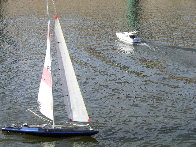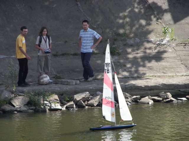Zawody uświetniła żaglówka instruktora Kosiaka, którą pływał nie kto inny jak MICHAŁ WIŚNIEWSKI, młody modelarz z Nowej Soli 😉