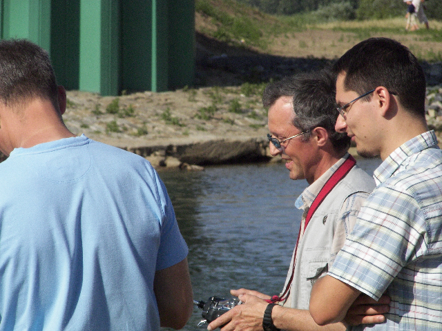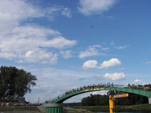 Niestety ze względu na spory wiatr, sporą liczbę widzów oraz ograniczone pole widzenia kładki z terenu przystani mogliśmy zobaczyć tylko podstawowe akrobacje takie jak pętle i beczki. Widowiskowych przelotów „na plecach” pod kładką nie było…może w następnym roku 😉