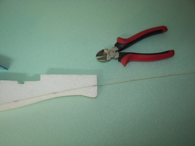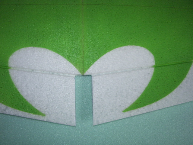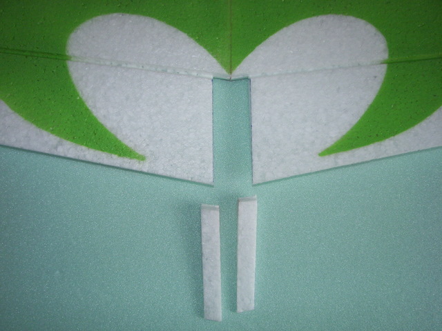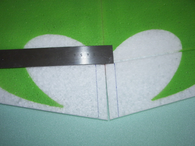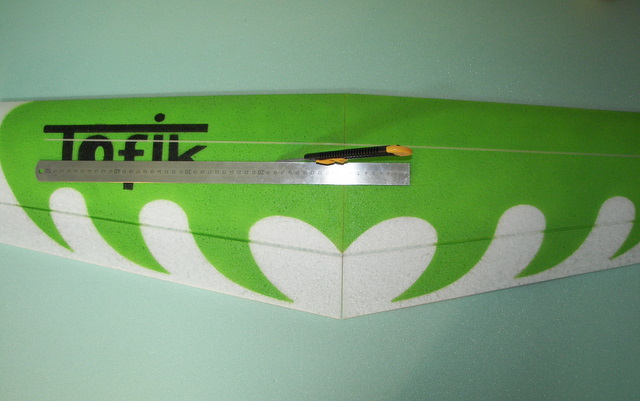 W centralnej części lotek trzeba wyciąć miejsce na kadłub. Wystarczy obciąć każdą lotkę o 15mm.