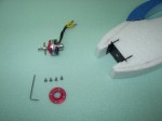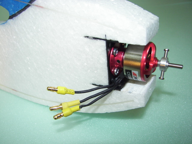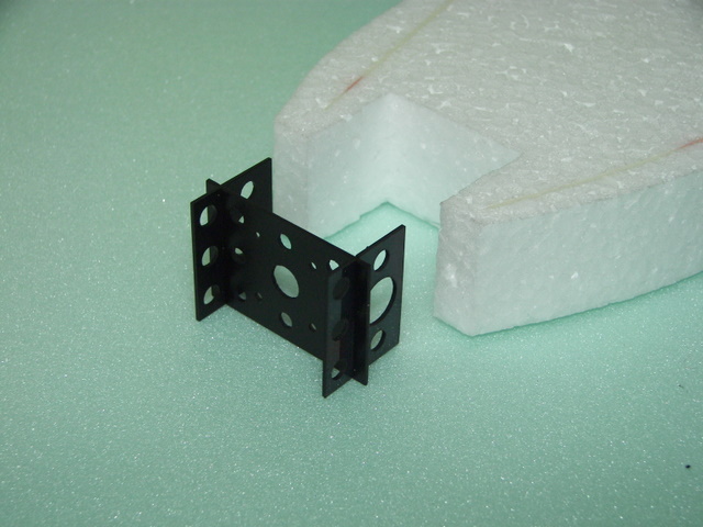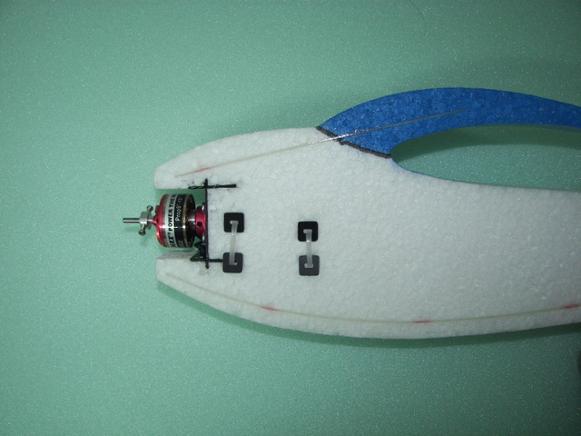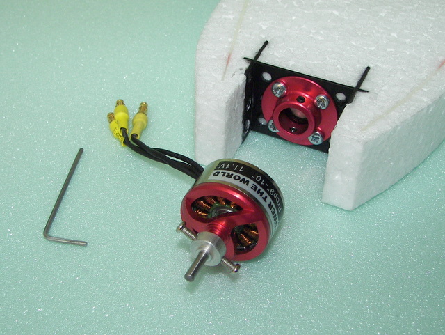 Mocowanie silnika wykonane jest z trzech wyfrezowanych i pomalowanych elementów z laminatu. Rozstaw otworów mocujących jest dopasowany do silnika Emax –2812 / 2822.