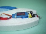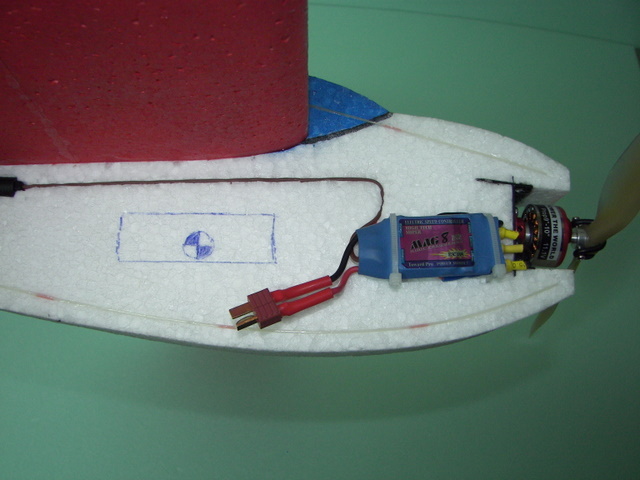 Mocowanie akumulatora jest ostatnim etapem budowy modelu, i wiąże się ze znalezieniem środka ciężkości. Znajduje się on w odległości 175mm (+/-5mm) licząc od początku kadłuba.