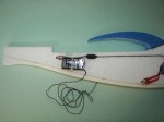 I prowadzona wzdłuż modelu, przy pomocy skobli wykonanych ze szpilek krawieckich.