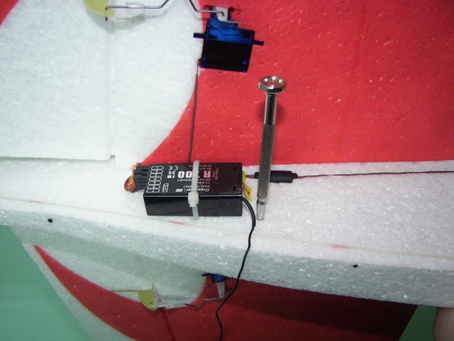 Odbiornik jest przymocowany do kadłuba opaską zaciskową, podobnie jak regulator. Dla lepszej wizualizacji, wybrałem dużego Graupnera a dla skrócenia opisu budowy umieściłem go bezpośrednio na wierzchu kadłuba.