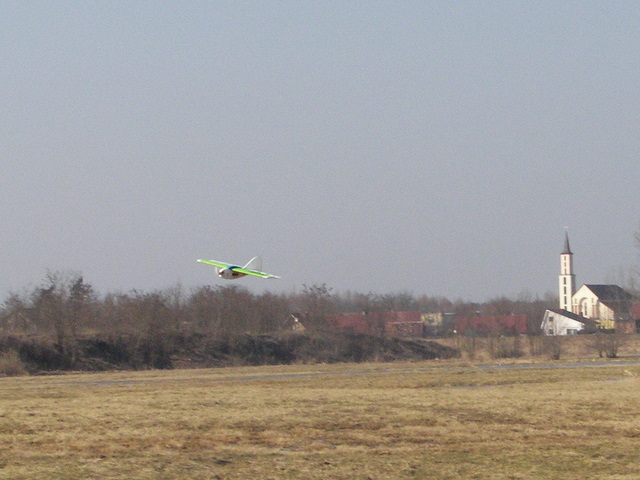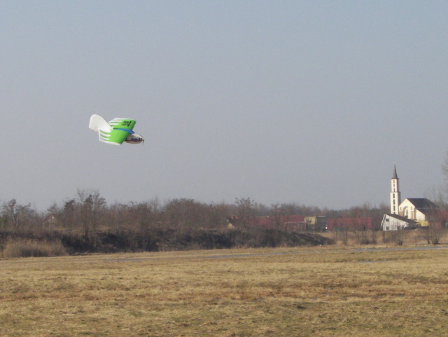 Lata dość szybko, na początek niestety nie polecam, mój latał na silniku SUPPO o ciągu ok. 600 gram przy wadze modelu ok. 400 gram i pakiecie 1300 mAh 20C 3s.