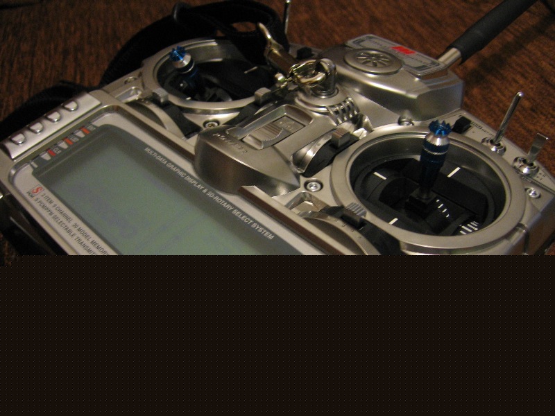 - Przedłużka do zawieszania paska – (ang. TX neck strap attachement, balancer) ok, skoro już zmieniliśmy antenę na krótszą lub/i pakiet na lżejszy sprawdźmy jak wygląda wyważenie naszego nadajnika. Czy zawieszając go na pasku nie odchyla się on do góry lub w dół. Montując ten aluminiowy element, możemy w dość dużym zakresie (kilka cm) zmieniać miejsce zaczepienia paska i wyważyć nadajnik sprawiając by był w poziomie (lub był skierowany w górę/dół, w zależności co nam bardziej odpowiada). Firma Spectrum wypuściła go do swoich nadajników 2,4 GHz, niestety jakiś czas temu nie udało mi się znaleźć tego elementu w Polsce i kupiłem poza granicami kraju. Teraz są już dostępne w większości sklepów modelarskich. Z tym upgrade’em możemy wyeliminować sytuację, gdy pakiet przeciąża nadajniki do tyłu.