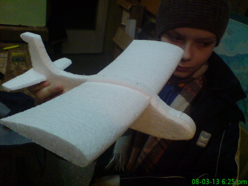 Poniżej Łukasz ze swoim pierwszym modelem latającym „Jupi EPP” projektu Leona