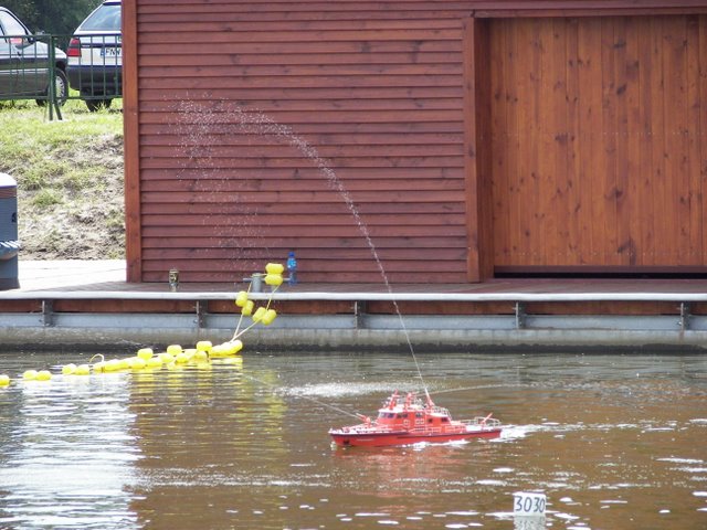 Zapał wśród zawodników był tak wielki że trzeba było go ostudzić. Tego zadania podjął się Janusz Majorczyk demonstrując działanie armatek wodnych w swoim modelu statku pożarniczym.