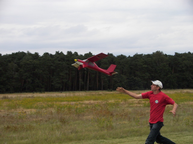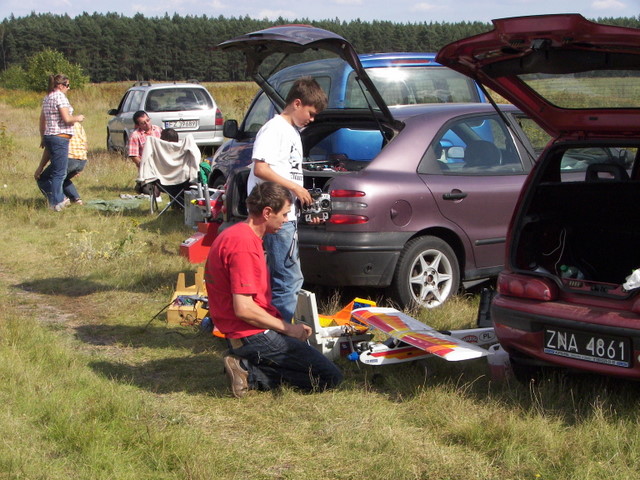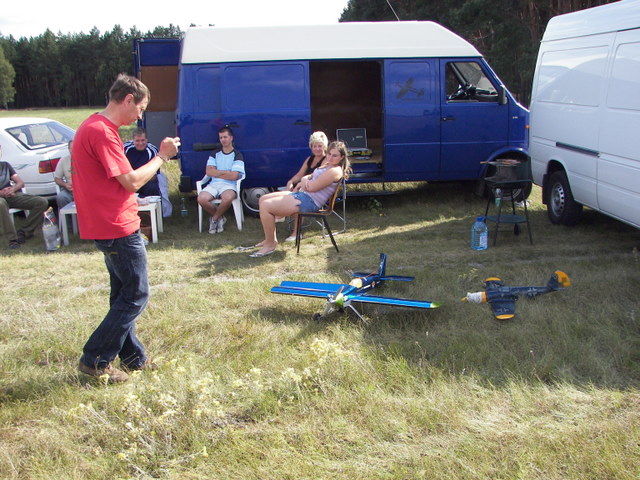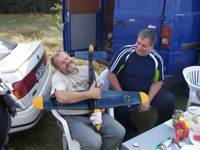 Paweł na ochotnika wykosił pas startowy (wielkie dzięki), więc modele spalinowe miały gdzie lądować. I całe szczęście, bo miłą niespodziankę swoją obecnością zrobili nam modelarze z Zielonej Góry. Szkoda że nie wszyscy chętni mogli wziąć udział w pikniku. Dla niektórych kolegów niedziela była dniem roboczym. Mają co żałować. Bo to był kolejny bardzo udany piknik.