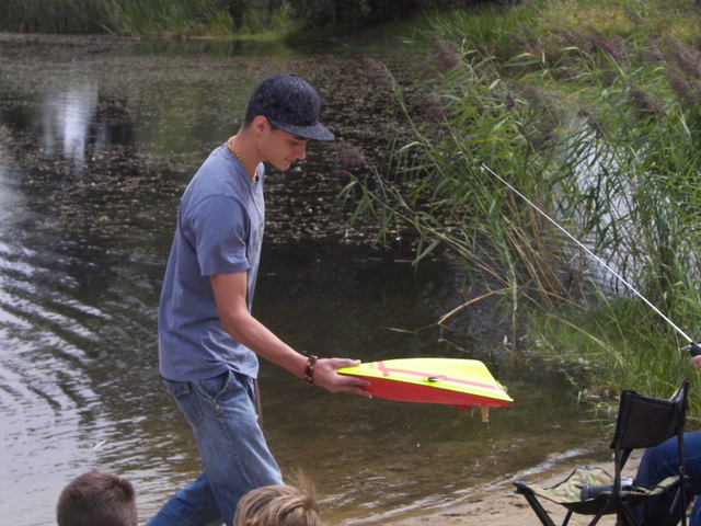 Koledzy z Bytomia Odrzańskiego również znaleźli chwilę by podjechać na pokazy (na zdjęciu Adam Marcinkowski w modelem mini eco). Na zdjęciu obok, model ślizgu Michała Wiśniewskiego po zakończonym pływaniu.